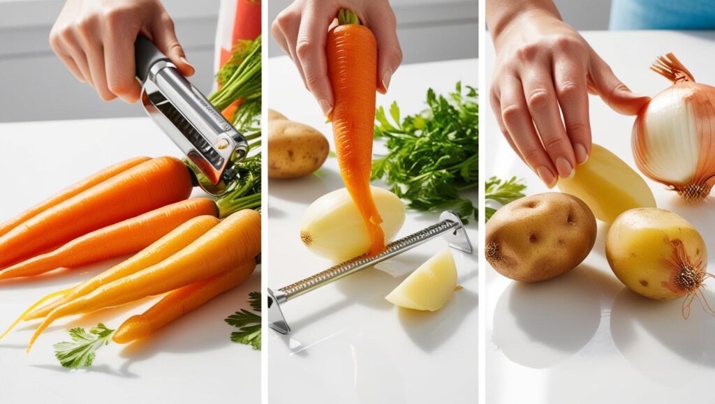 - Congélalas ligeramente: Deja las verduras 5 minutos en el congelador antes de pelar. Están más firmes y se desliza mejor el pelador.